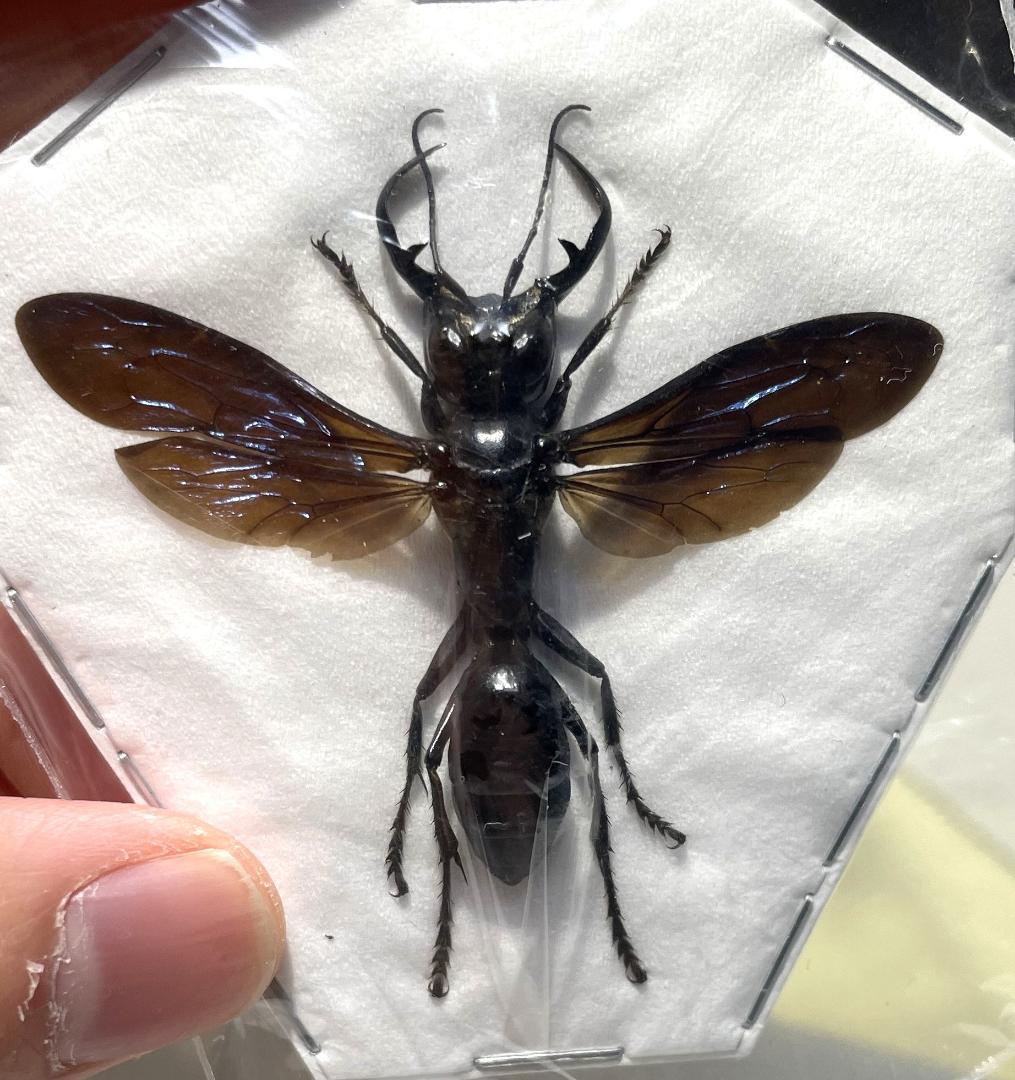 - ちょっと失望、 購入したのは13番のcommon mormonです。 翼の黒い部分は黒い筋、黒い下地なので 立体の標本なら、奥行き感がありすごく綺麗ですが。 あいにく体以外全部挟まれて平面の標本なので、黒い塊しか感じられません。 ちょっとがっかりです。 対して、体は綺麗の形をしています。特に不満がないです。