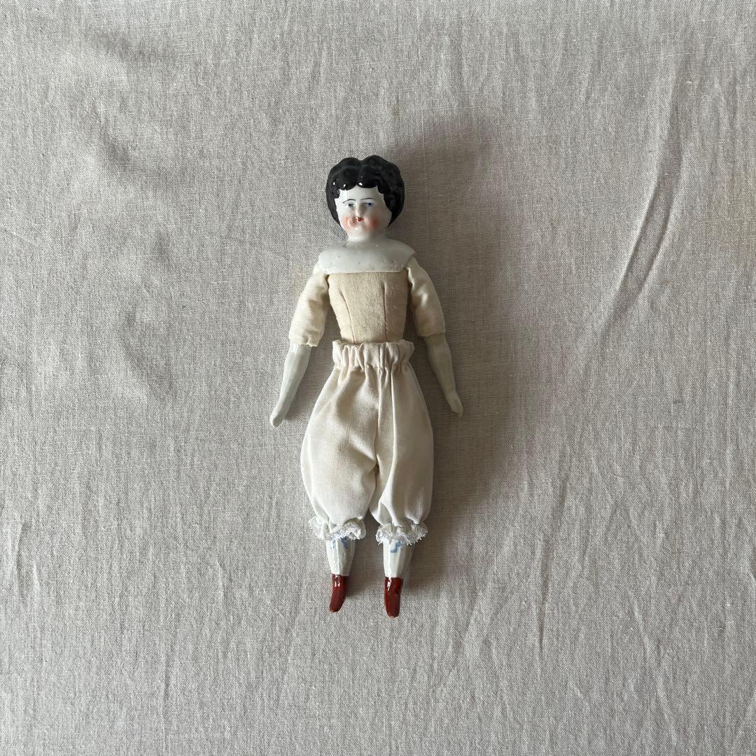 アンティークチャイナヘッドドール フラットトップクラシカルスタイルビスクドール約26㎝フラットトップでクラシカルな雰囲気のチャイナヘッドドール珍しい大きな青い目が可愛らしい素敵なブーツも素晴らしいデザイン前オーナー様によると数十年前におばあ様がボディを直されているそうで状態は大変良好おばあ様お手製の白いドレスがとても似合います左手の先が少し欠けています写真をご確認下さいコレクションの追加、お部屋のインテリアや写真撮影の小物にいかがでしょうか?ご注意:古いものですので、変色、汚れなども見られます写真にてしっかりご確認の上ご検討くださいドールと衣装のみの出品撮影小物は付きません#アンティーク#チャイナヘッドドール#ビスクドール#ビンテージ#インテリア#シャビーシック#レトロ#ブライス#アンティークドール#アンティーク#ドイツアンティーク#フランスアンティーク#ブロカント#蚤の市#古道具#ヴィンテージ#ドールハウス#雑貨#ミニョネットレビュー